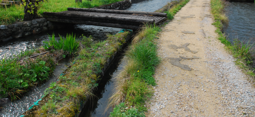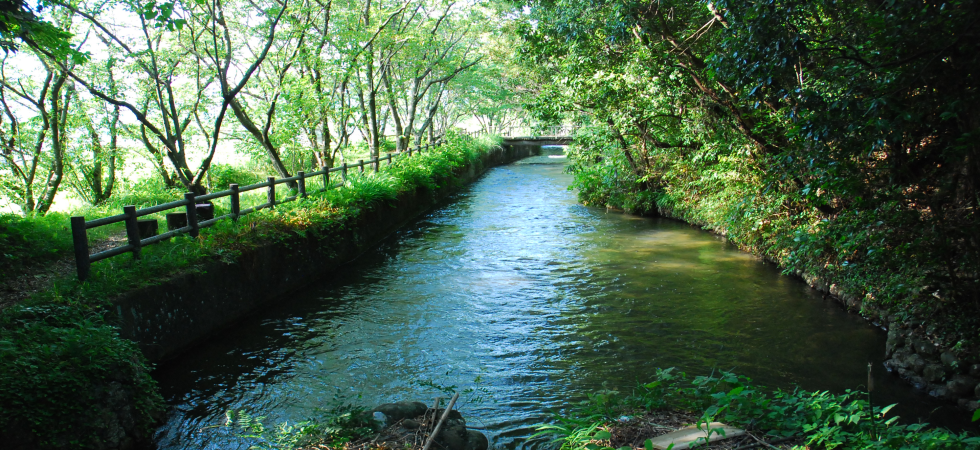 県内でも唯一当時に近い姿が残っている水路の分水点「三叉」付近。香南市指定史跡となっています。